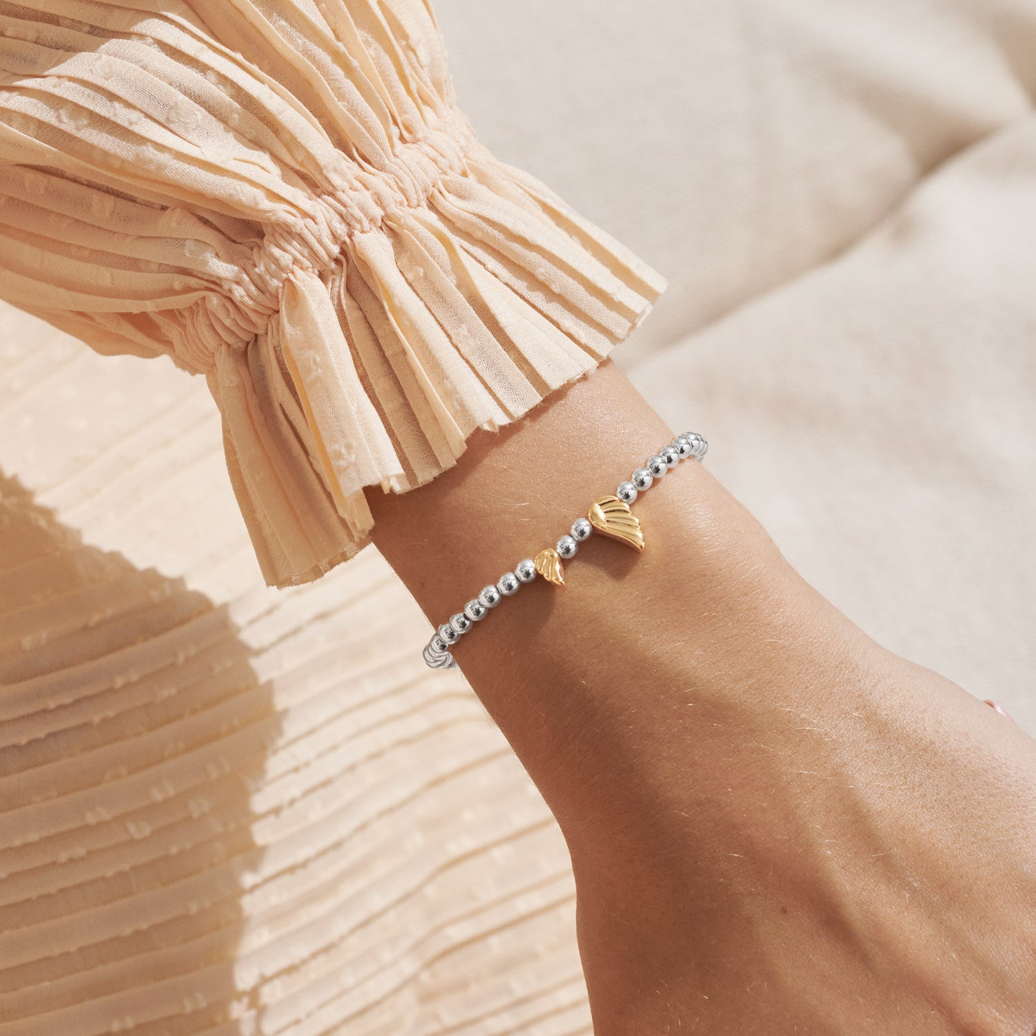 Designed with shimmering silver-plated beads and a delicate yellow gold-plated angel wing charm, this heartfelt piece symbolises care, comfort, and divine guidance. The sentiment card reads, “A special bracelet for you today, your guardian angel will protect you always, watching over you from up above, looking after you with care and love. ” offering a message of reassurance and warmth. Perfectly packaged in a buttercream gift box with a golden-stamped sentiment, this bracelet is a meaningful gift for any occasion—from birthdays to moments when someone needs a little extra love.