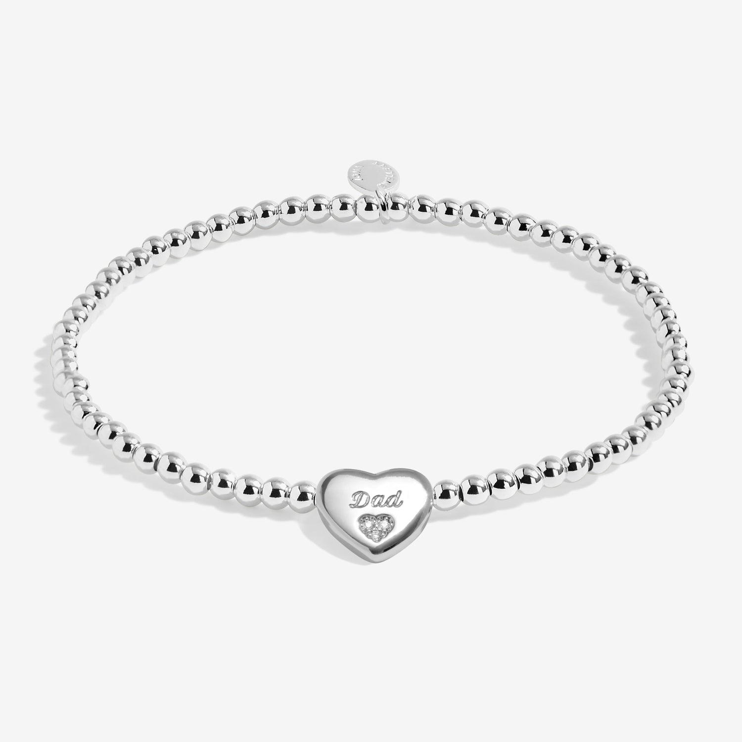 This delicate silver-plated beaded bracelet is finished with a shining engraved heart charm, symbolising a Dad’s lasting presence and love. Designed with a comfortable 17.5cm stretch fit, it’s perfect for everyday wear, keeping treasured memories close at all times.