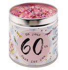 Best Kept Secrets 60th Birthday Classic Cotton Decorated Candle in a tin.