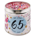 Best Kept Secrets 65th Birthday Classic Cotton Decorated Candle in a tin.