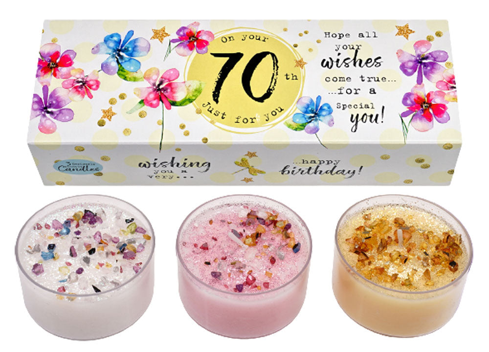 Three Lites - Birthday Ages Tea Light Gift Box - 70th