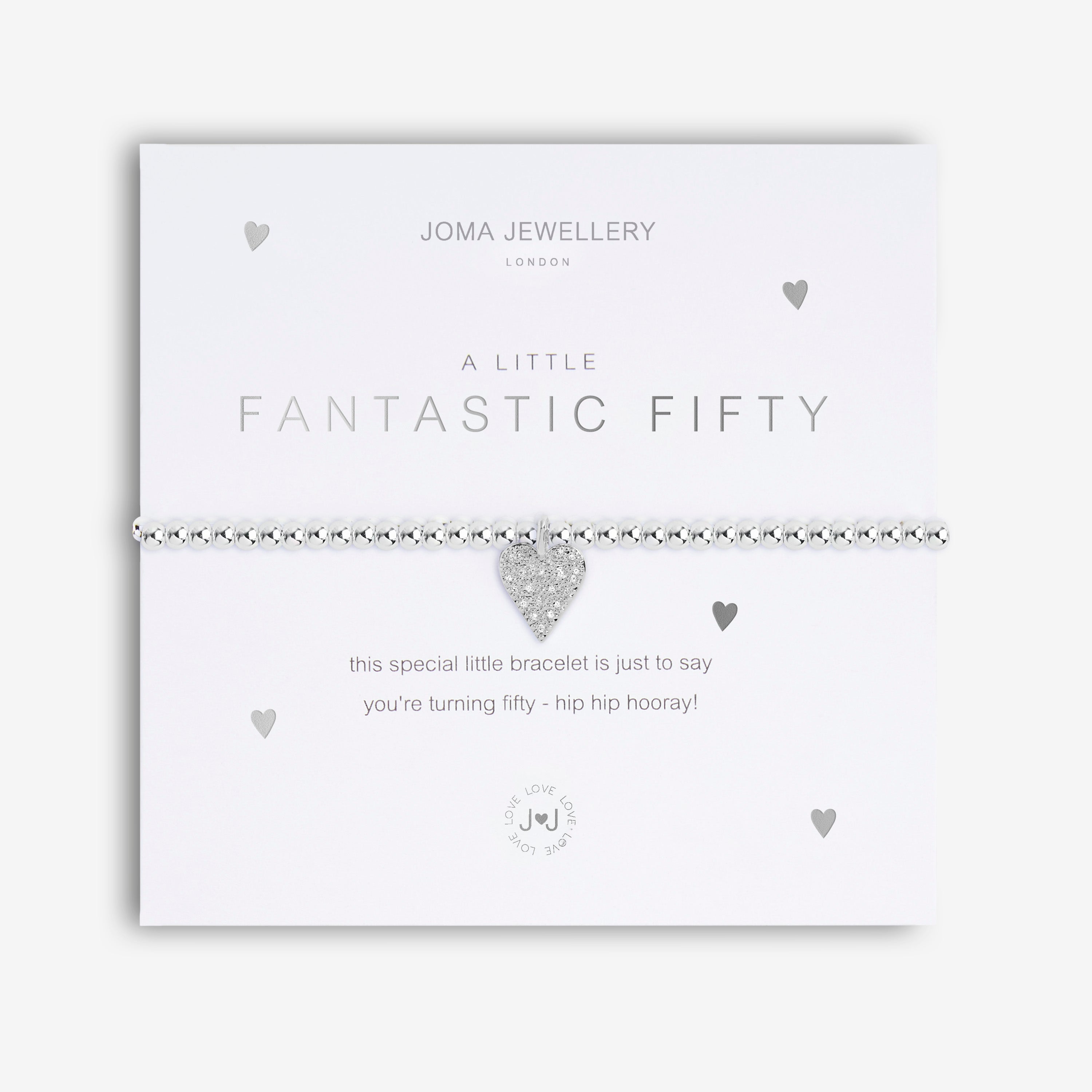Complete thr birthday collection with the 'A Little' Fantastic Fifty Bracelet. Equally thoughtful and beautiful, this silver-plated bracelet pairs a dainty design with the sweetest sentiment. Better yet, this bracelet features our most-loved details, including a stretch bead design, stylised card and adorable poem.