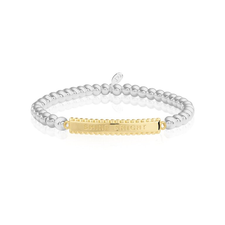 Mix and match this stretch bead Shine Bright Bracelet Bar Bracelet to create a look with stacks of style. Featuring twinkling golden and silver plating, special charms, and an engraved sentiment, it's oh so special.