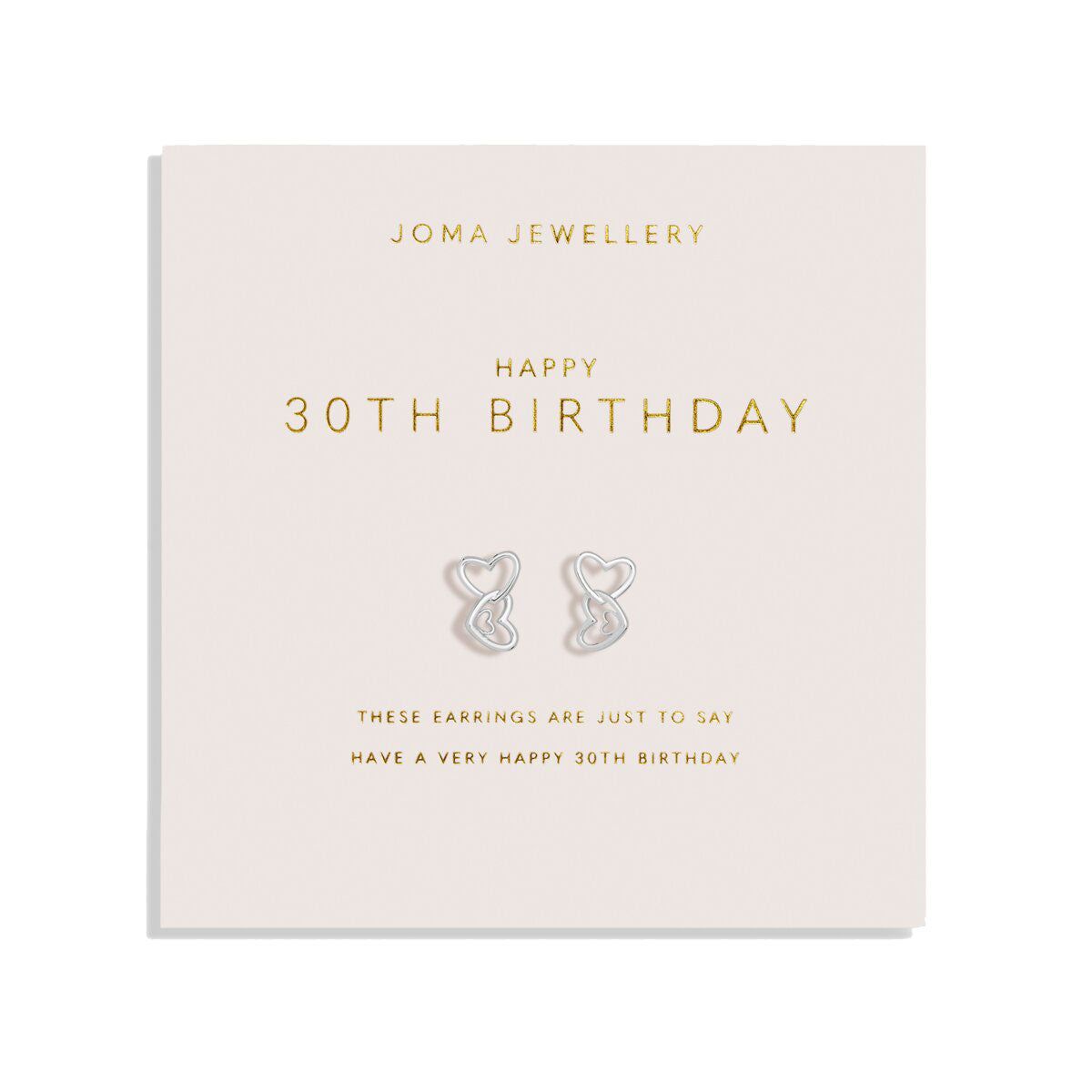 These elegant silver-plated earrings feature an interlinked heart drop design, symbolising love and well-wishes on this special day. Presented on a blush card with the heartfelt message, "Have a very happy 30th birthday," they make a thoughtful keepsake that she’ll cherish for years to come. With sterling silver pins and a timeless design, these earrings are a perfect gift to mark her 30th in style.
