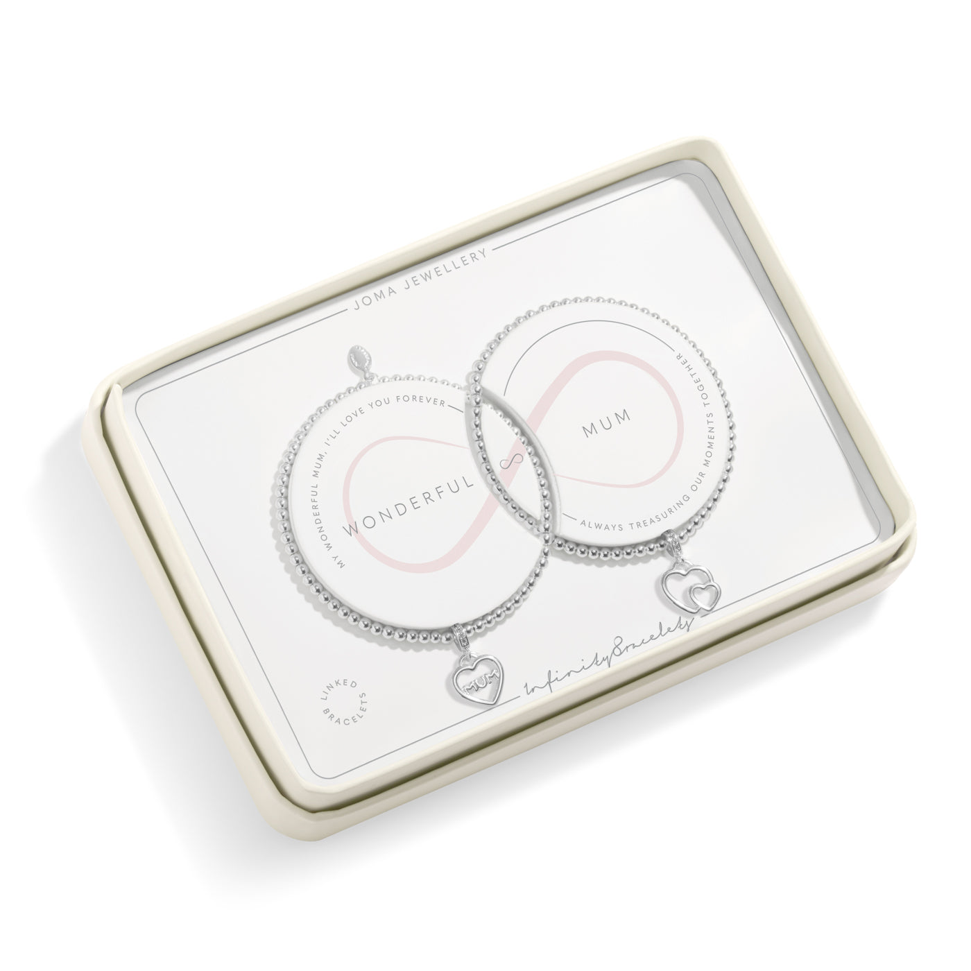 Celebrate the most important woman in your life with the Joma Jewellery Wonderful Mum Linked Infinity Bracelets Gift Box.