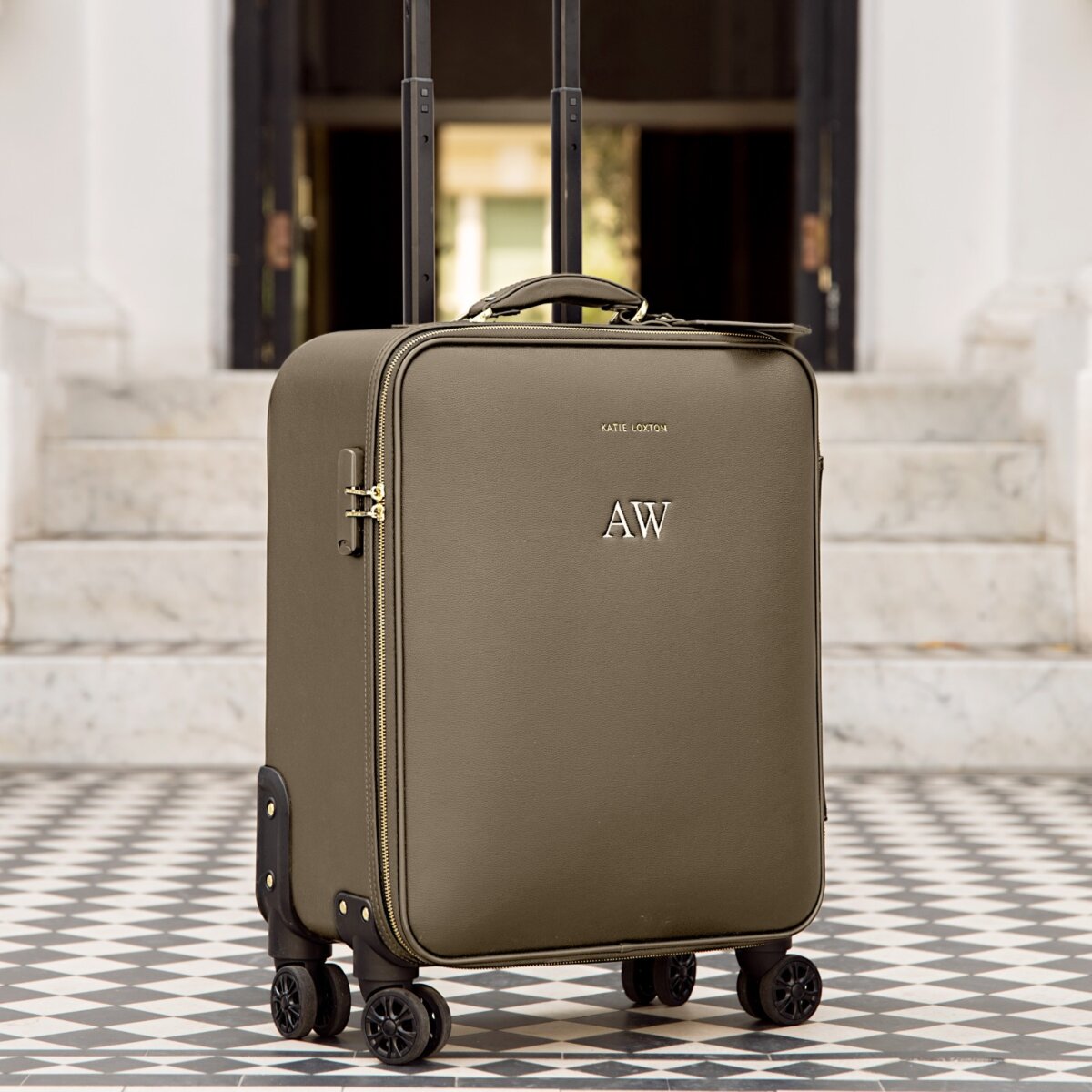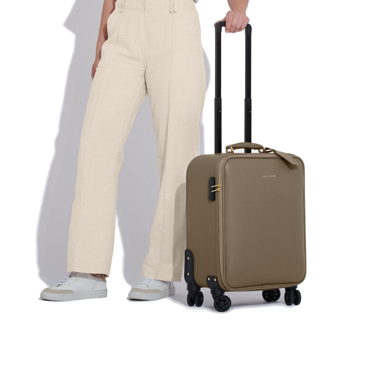 The Katie Loxton Oxford Cabin Suitcase in Mink is here to get you from airport lounge to airplane aisles.