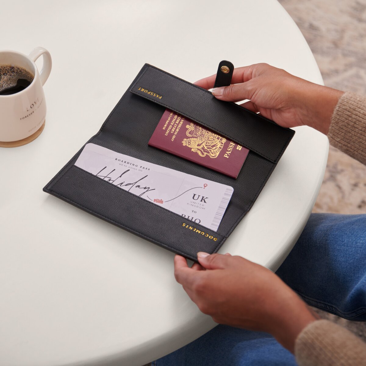 Jet off with confidence and elegance with the Katie Loxton Sentiment Travel Wallet in timeless black.