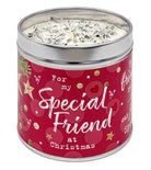 Make this holiday season even more special for your cherished friend with the "For my Special Friend at Christmas" candle gift in a tin from Best Kept Secrets. It's a heartfelt and aromatic token of your friendship and a wonderful way to enhance the festive spirit.