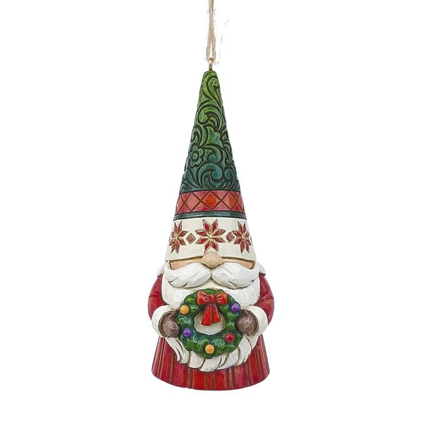 Jim Shore "Christmas Traditions" Santa Gnome Holding a Wreath Figurine (Hanging Ornament)