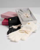 Crafted from super-soft fluffy rib-knit material, they’re designed to keep hands warm while adding a chic winter touch. Finished with a gold-tone branded pin for a luxe detail, these gloves are tied with a ribbon and beautifully presented in a festive gift box stamped with the sweet sentiment ‘Winter Wishes’.