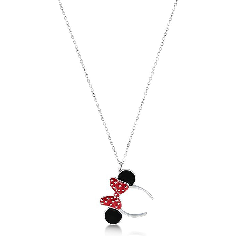 Show off your playful side with the fabulous 14kt white gold-plated Minnie Mouse necklace with a Minnie ears headband as the pendant. Decorated with red and black enamel.