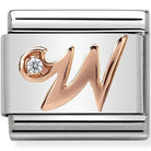 The perfect charm to personalise your bracelet - the Classic Rose Gold Letter W Charm by Nomination. This sparkling charm is crafted from stainless steel, detailed with a rose gold letter W and finished with a shimmering cubic zirconia stone.
