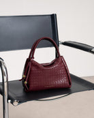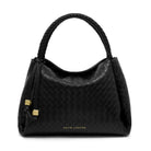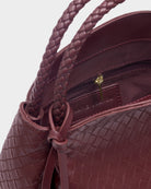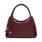 Crafted from luxurious vegan leather with a stunning woven or patent crackle finish, this bag brings elegance and practicality in equal measure. The Black and Cherry colourways feature a beautiful woven top handle, while the Pewter style offers a unique patent crackle effect for a modern twist. Its braided top handles and gold-tone hardware exude sophistication, while the signature branded charm adds a touch of exclusivity. The cleverly concealed magnetic closure keeps essentials secure, and the spacious interior with zip pocket ensures effortless organisation.