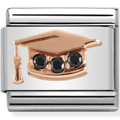 Celebrate a significant milestone with the Classic Rose Gold Graduation Link, an elegant addition to any nomination classic bracelet. This link symbolises achievement and academic success, making it an ideal choice to honour graduation day. Its timeless design blends sophistication with personal meaning, perfect for commemorating this special occasion.