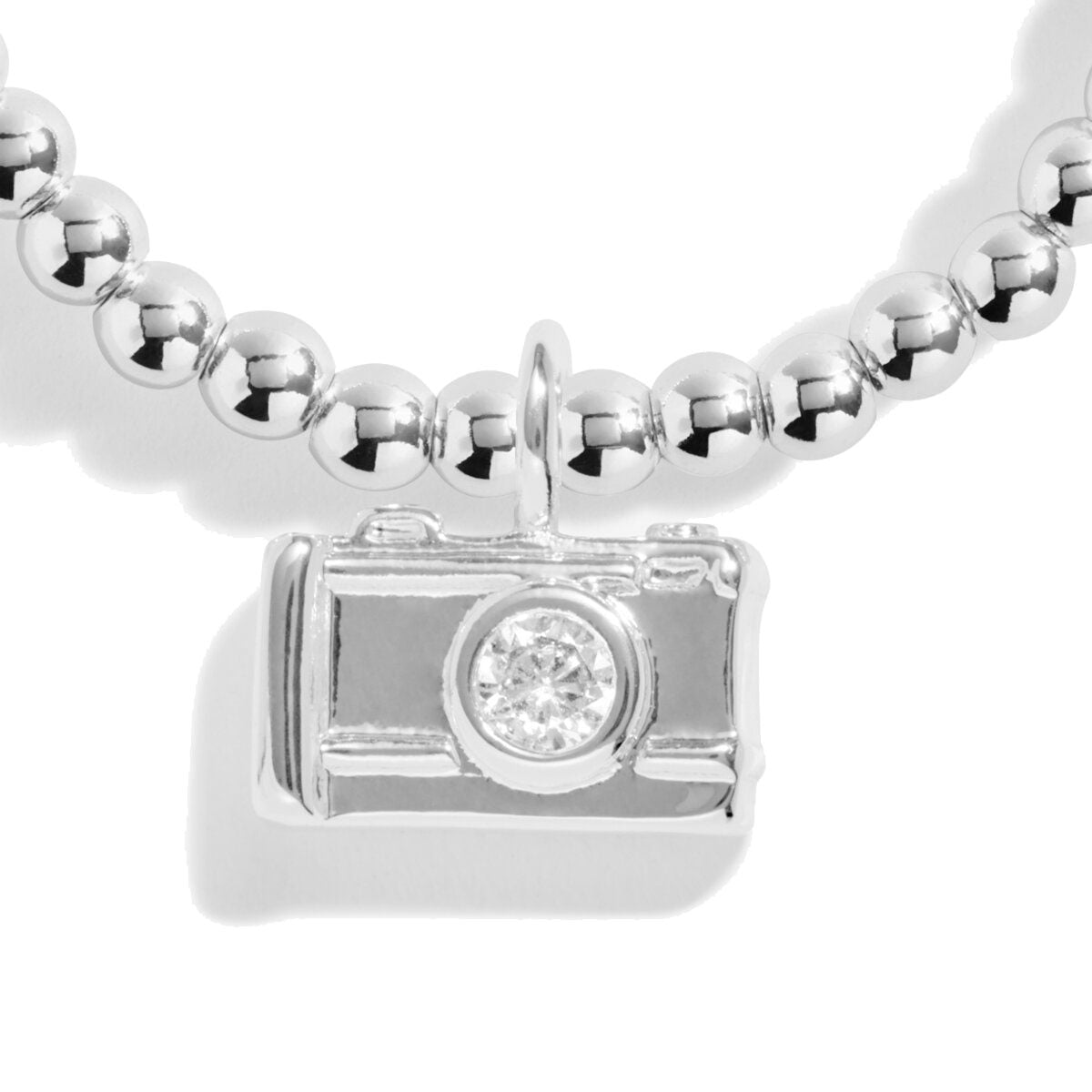 Featuring the signature stretch-bead design for a comfortable fit, this bracelet is adorned with a silver-plated camera charm, complete with a sparkling cubic zirconia gemstone. It’s beautifully presented on a sentiment-stamped card with a heartfelt poem, making it a perfect gift for someone special.