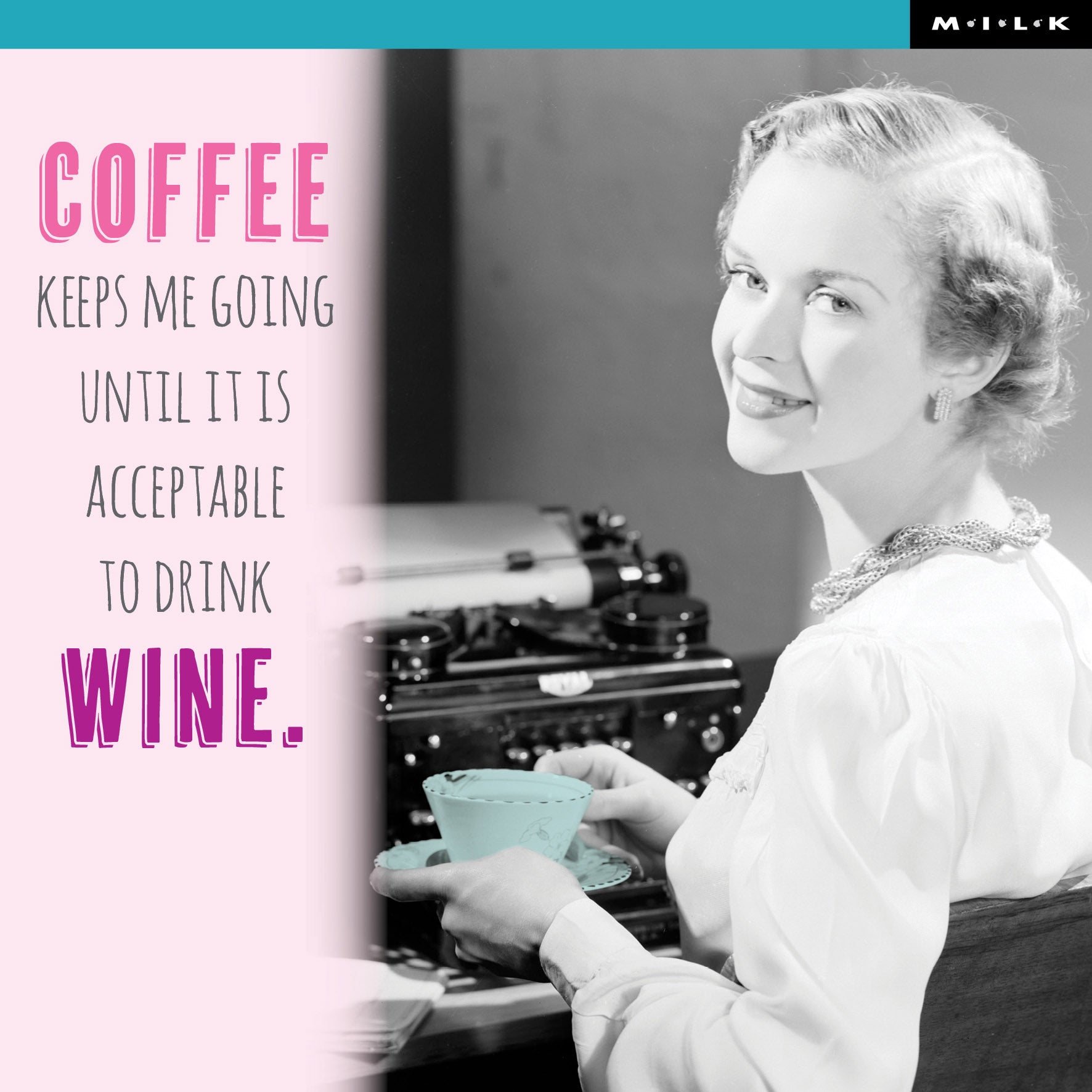 Witty and wonderfully relatable, this M.I.L.K. greeting card is made for those who run on caffeine and charm (and maybe a little wine).
