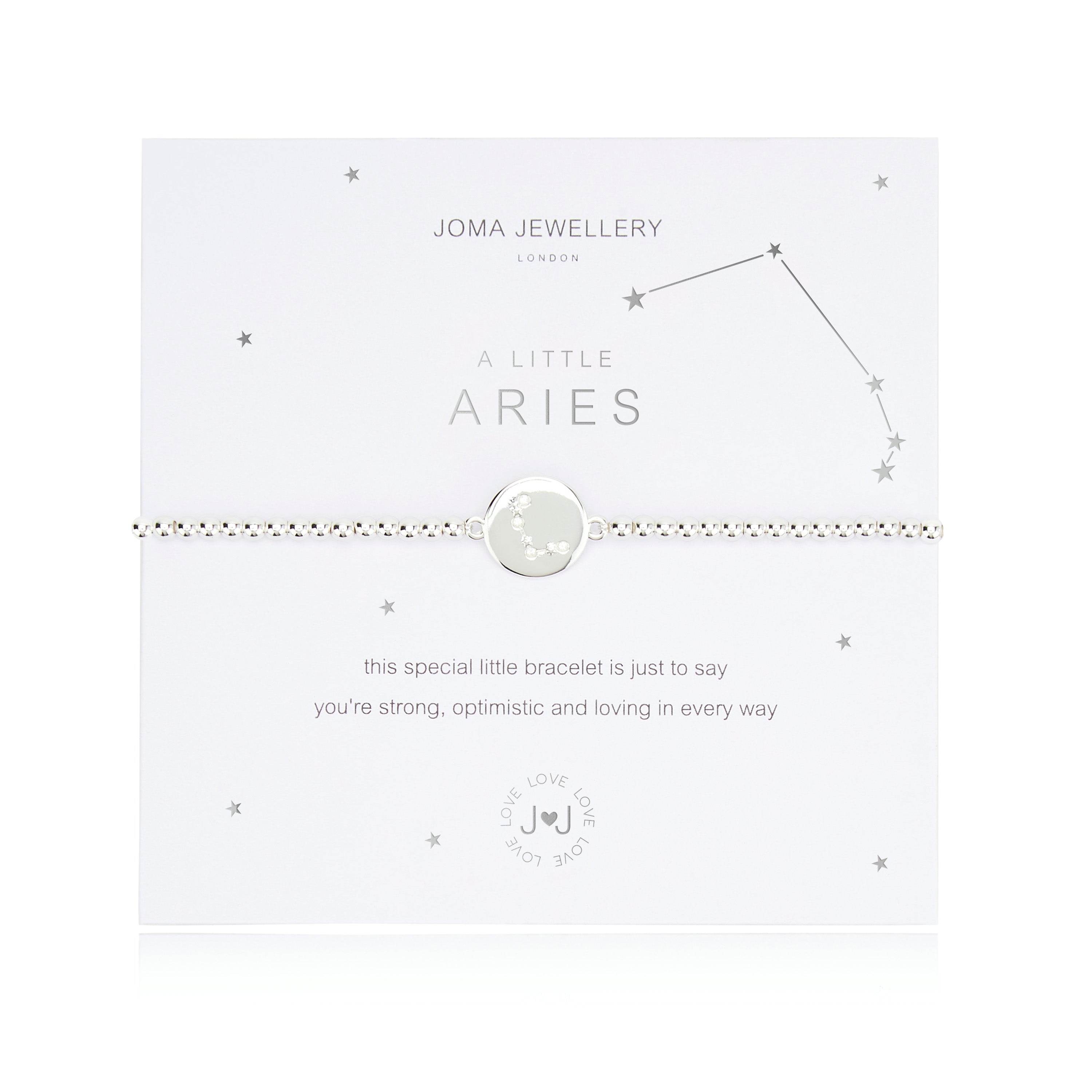 A Joma Jewellery Aries star sign bracelet with a gift bag . Gems representing the constellation for a birthday between March the 21st and April the 19th.