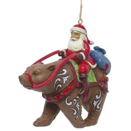 Jim Shore - "Christmas Traditions" Santa Riding A Bear Hanging Ornament
