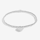 The A Little 'Shine Bright - Live Happy' Bracelet is the most uplifting piece. With sterling silver-plated beads that are made to last a lifetime, a sparkling heart pendant, and a stretch design to allow the perfect fit for all.