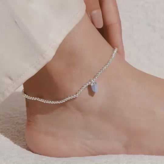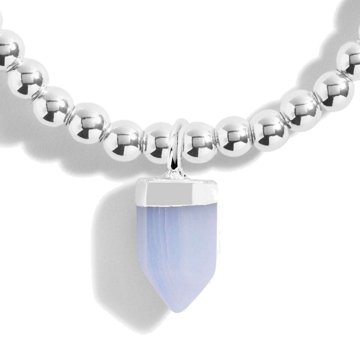 - Design: Silver beaded stretch chain with a semi-precious Blue Agate crystal point
