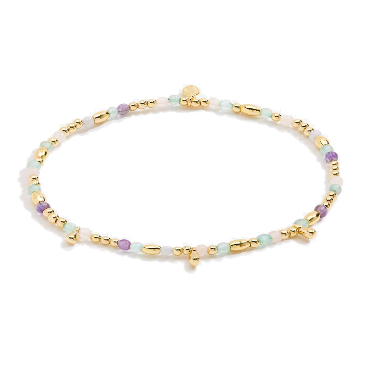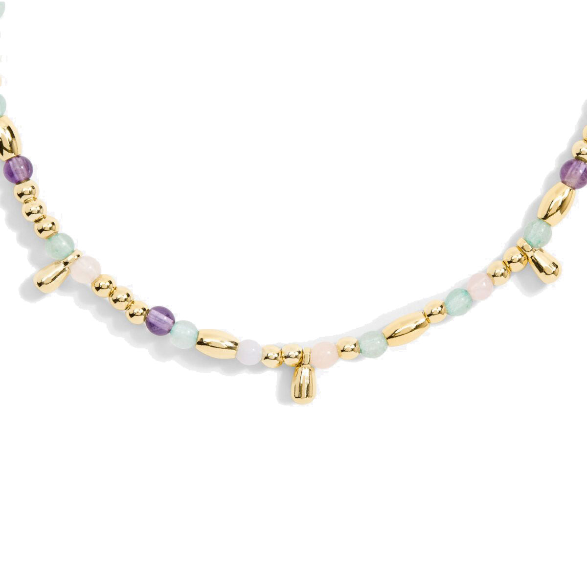 - Design: Multi-coloured semi-precious gemstones with gold beads and droplet charms