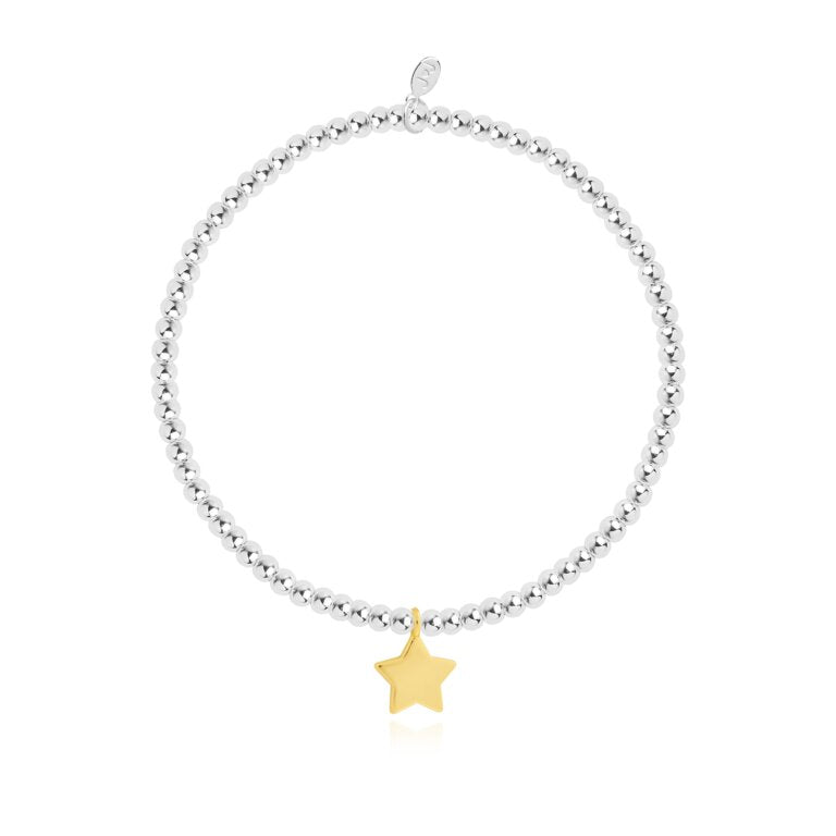 Show just how much you care with our beautiful Birthday Girl 'A Little' collection. Our Birthday Girl 'A Little' Bracelet features a shimmering silver-plated design and a golden star charm. The finishing touch? This sparkling design is wrapped around an oh so special metallic card, stamped with sweet sentiment!