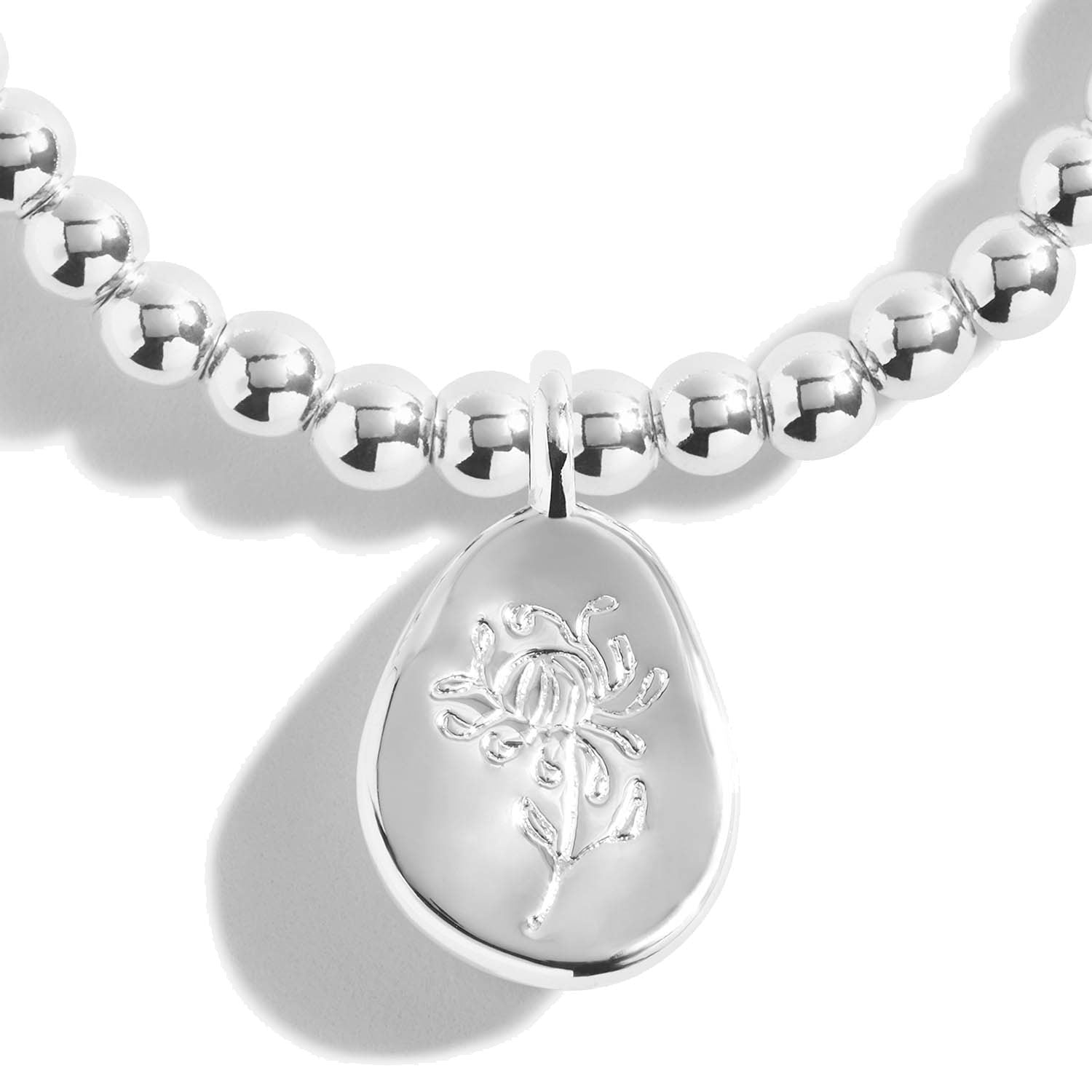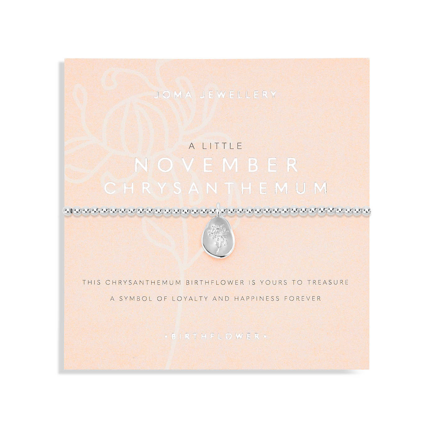 A chrysanthemum can represent happiness, a beautiful sentiment for Novembers Joma Jewellery Birthflower month bracelet.