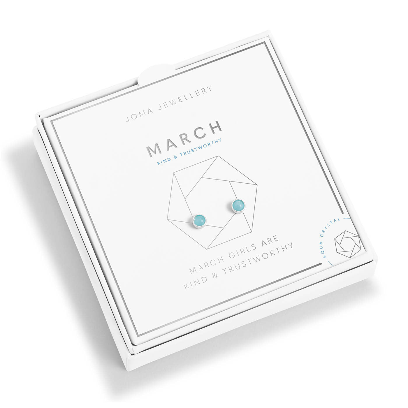 Joma Jewellery Birthstone Boxed Earrings - March - Aqua Crystal