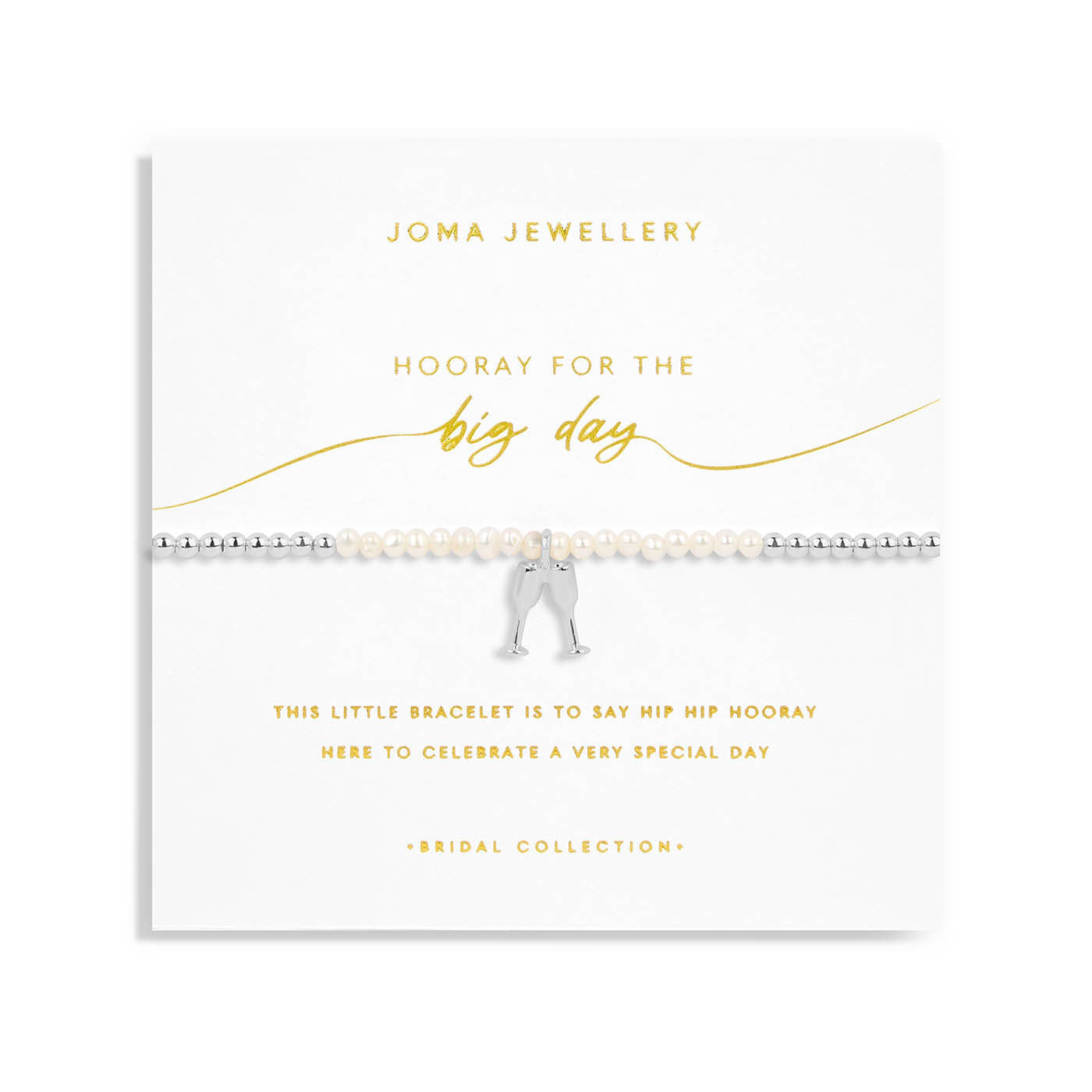 Designed to complement the glamour that surrounds the big day, our 'Hooray For The Big Day' Bracelet features luxe silver-plated beads, threaded with shimmering mother of pearl gemstones and a celebration charm. Filled with style and sentiment, the bracelet is complete with our signature stylised card and framed by a heartfelt poem.