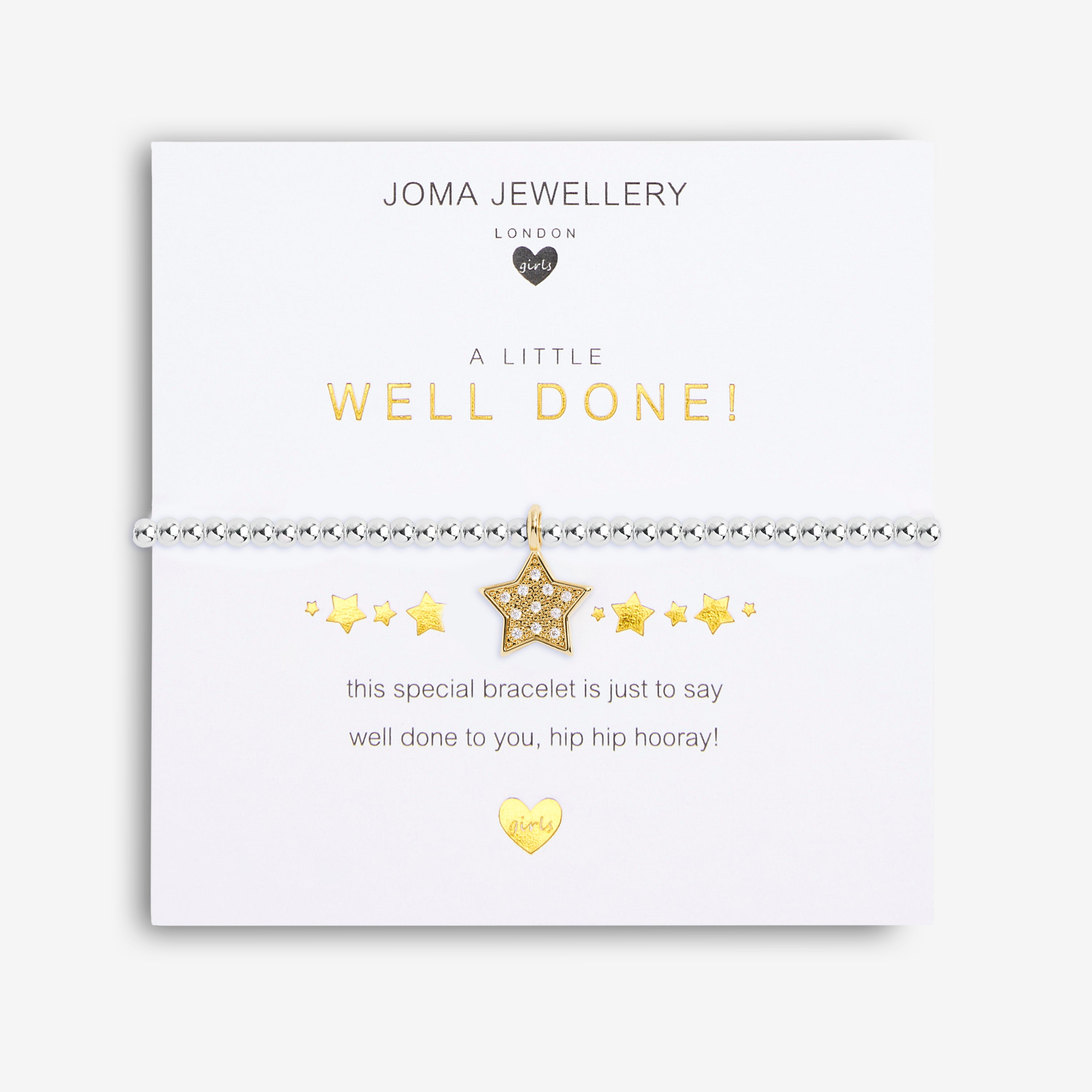 Celebrate your little one's achievements with the charming Children's Well Done Bracelet from Joma Jewellery. This delightful bracelet is the perfect way to say "well done" and is sure to bring a smile to every little darling.