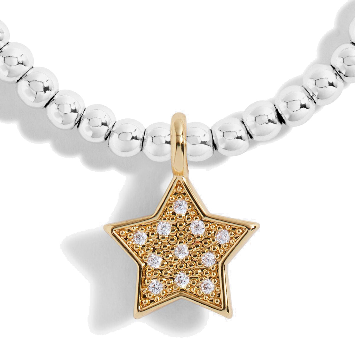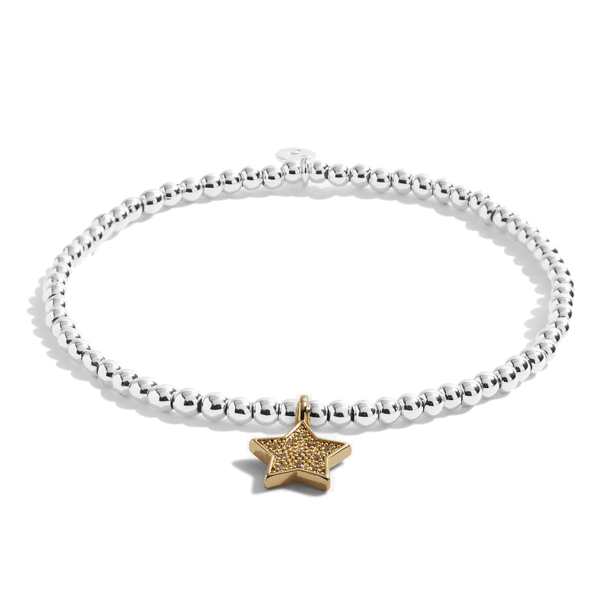 Crafted with smooth silver-plated beads and adorned with a gem-encrusted gold star, this bracelet is both stylish and meaningful. Its stretch design ensures a comfortable, personalised fit that grows with your child, making it a treasured keepsake they'll love to wear.