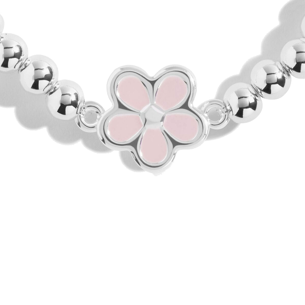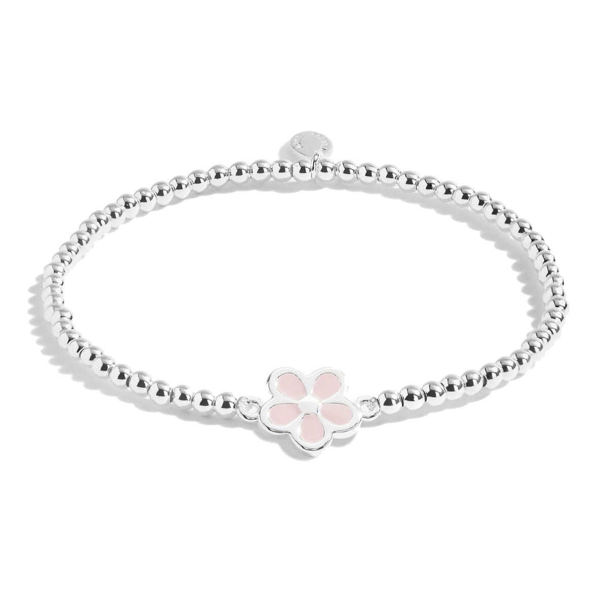 Nestled in a delightful heart-shaped box, this silver-plated bracelet is a treasure designed for smaller wrists. The classic silver-plated stretch design adorned with a charming flower charm adds a touch of elegance to every little stack.