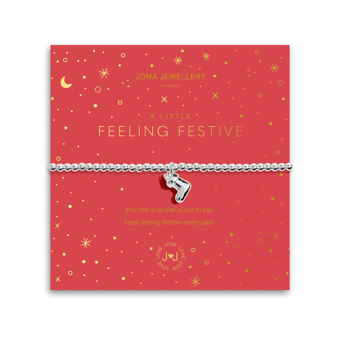 Celebrate in the most heartfelt way with our Joma Jewellery Christmas stocking A Little 'Feeling Festive ' Bracelet. and gift bag.