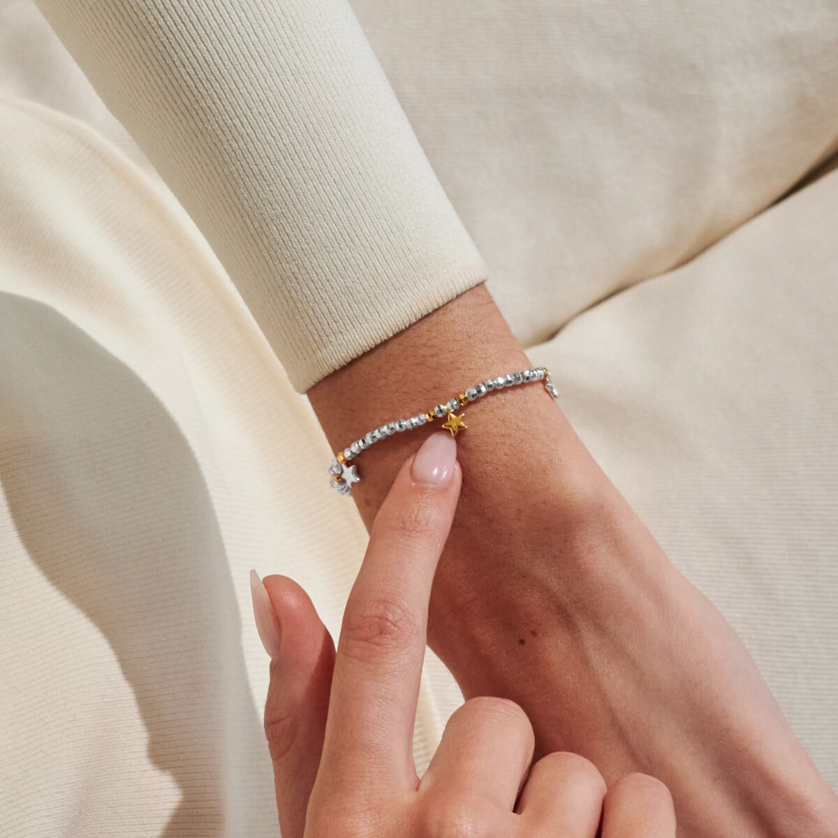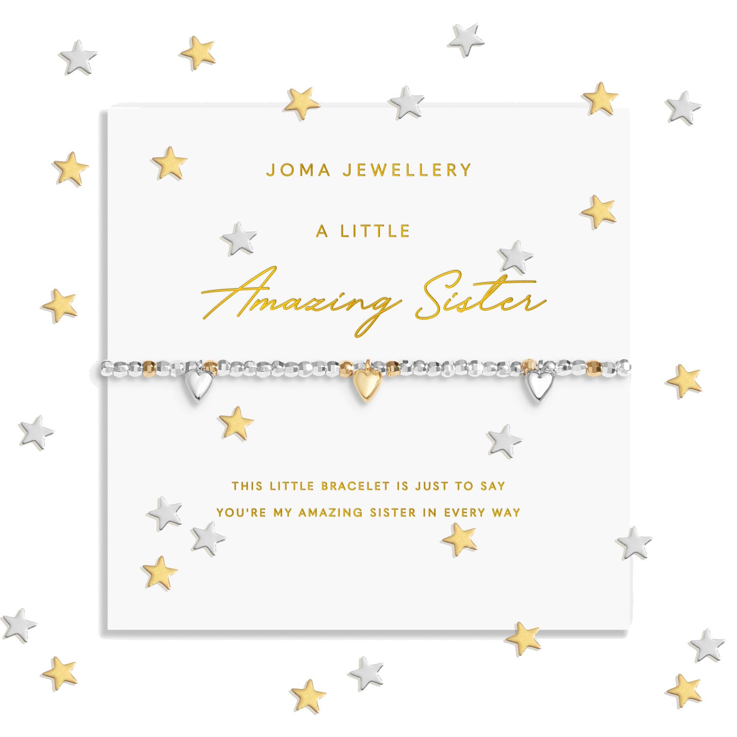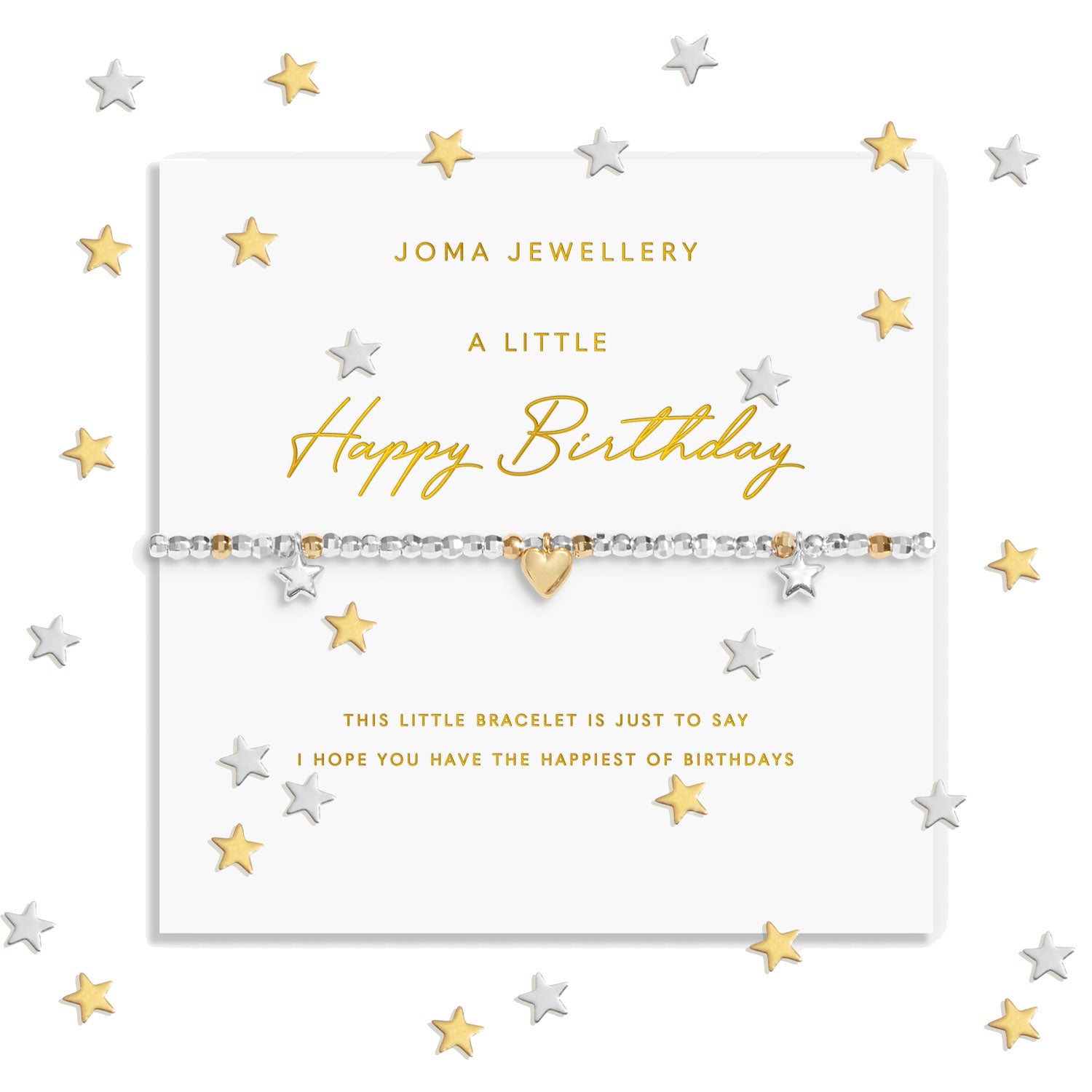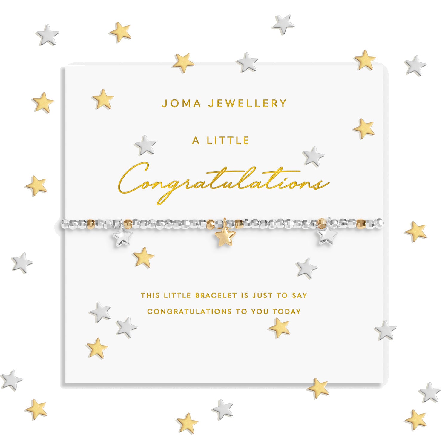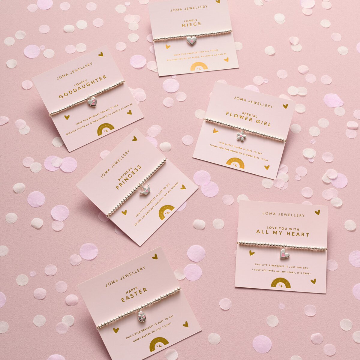 Nestled inside fun confetti-filled packaging, these silver-plated bracelets by Joma Jewellery are decorated with a pavé charm and paired with a meaningful sentiment.