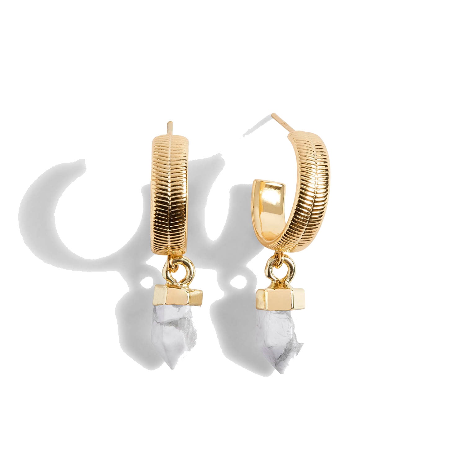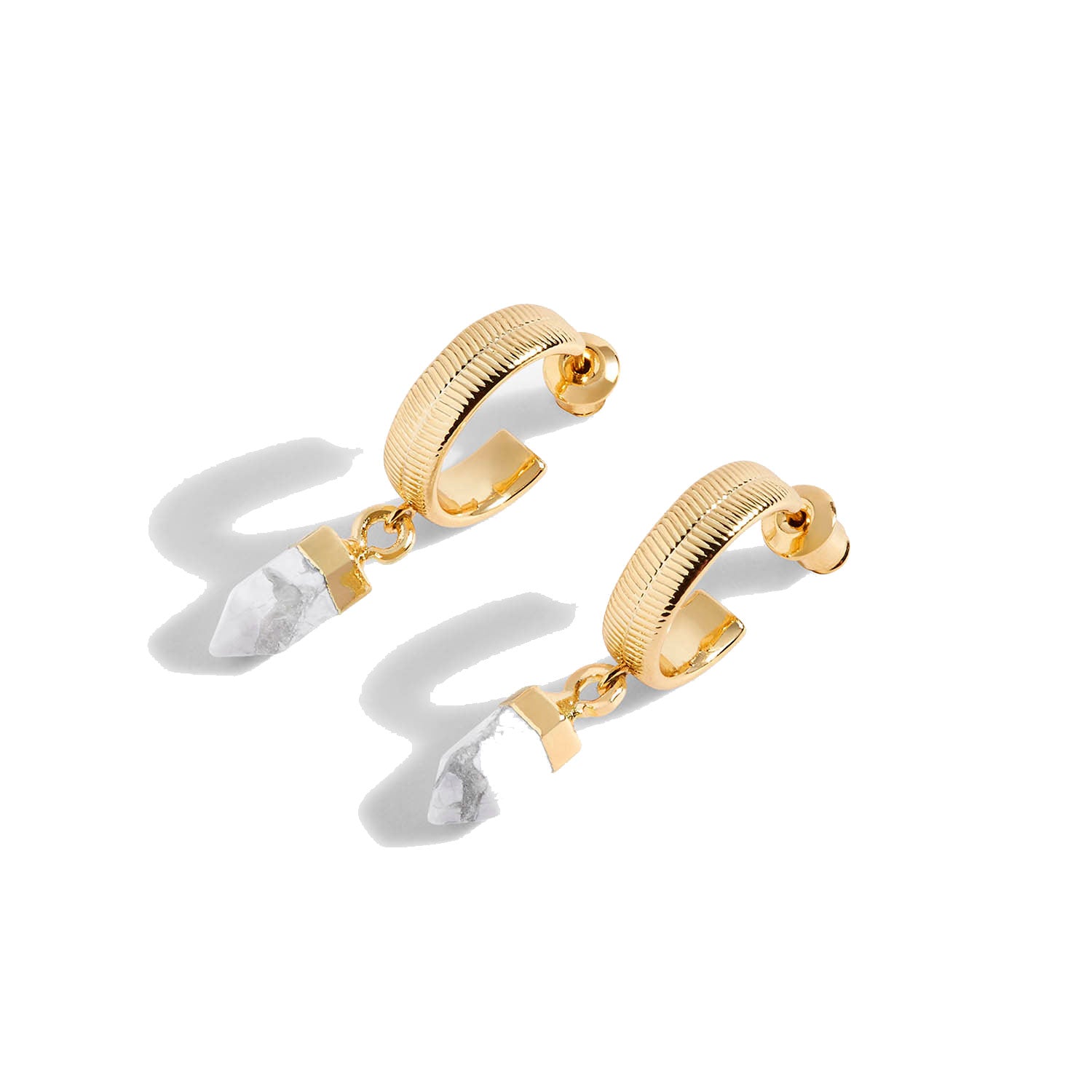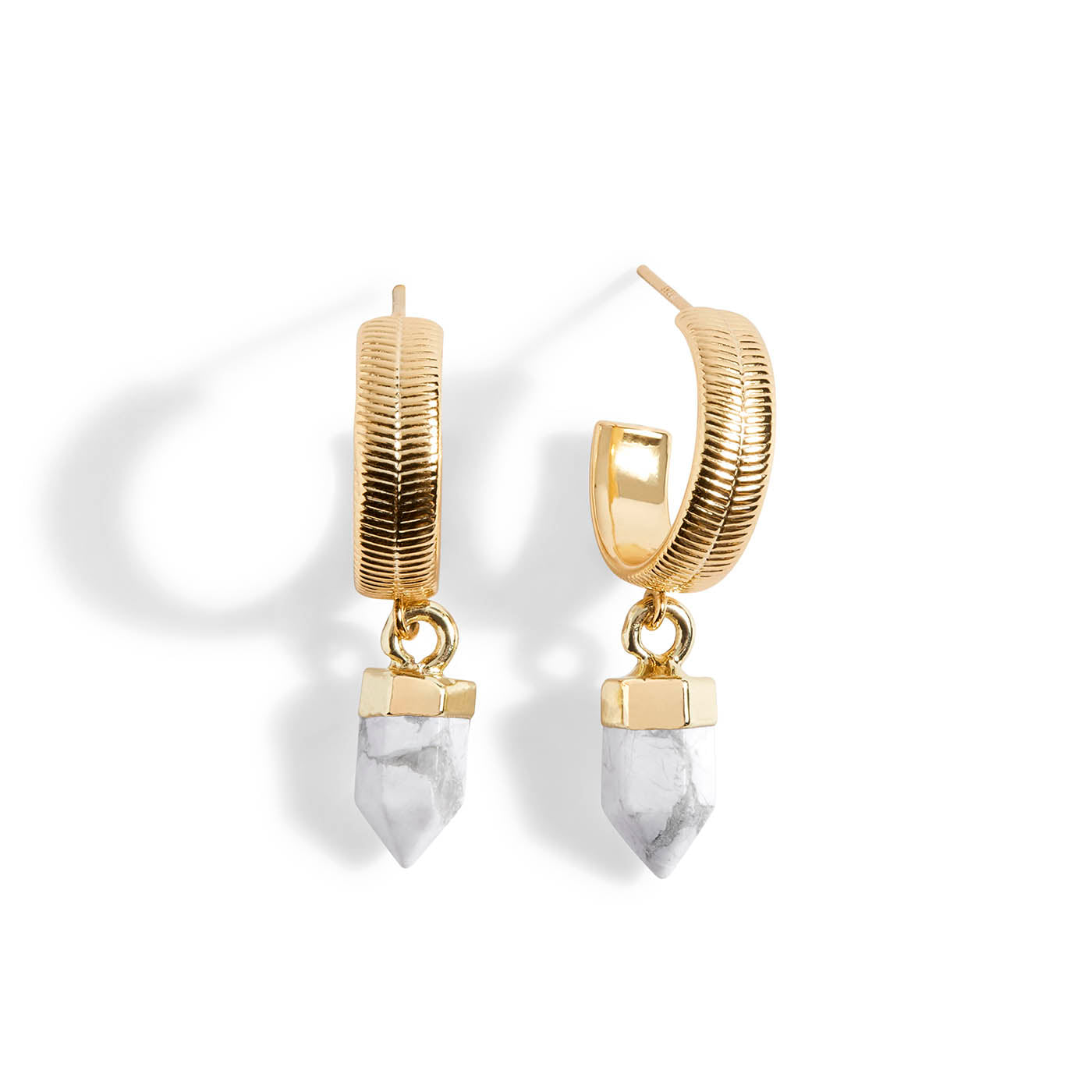 Perfect for dressing up or dressing down, the beautiful gold plating and shimmering howlite gemstone make these earrings a must-have addition to your jewellery collection. With a classic hoop design, these earrings will effortlessly elevate any outfit, while also being comfortable to wear all day long.