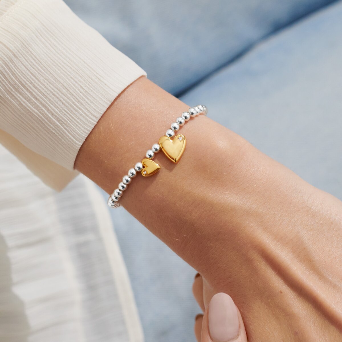 Featuring Joma's signature silver-plated beads and adorned with delicate gold-plated heart charms, this bracelet is a timeless symbol of your everlasting love and connection with your family. It's a thoughtful and elegant gift that will be treasured for years to come.