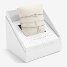 As stylish as they are sweet, these carefully crafted boxes house a plush pillow, cradling three exquisite silver-plated A Little Bracelets. Each bracelet comes adorned with its own unique charms and heartfelt sentiment, making them the perfect gift for those seriously special moments. Inside, you'll find a double-linked heart stretch bracelet, a single heart stretch bracelet, and a 'with love inscribed disc lobster clasp bracelet.