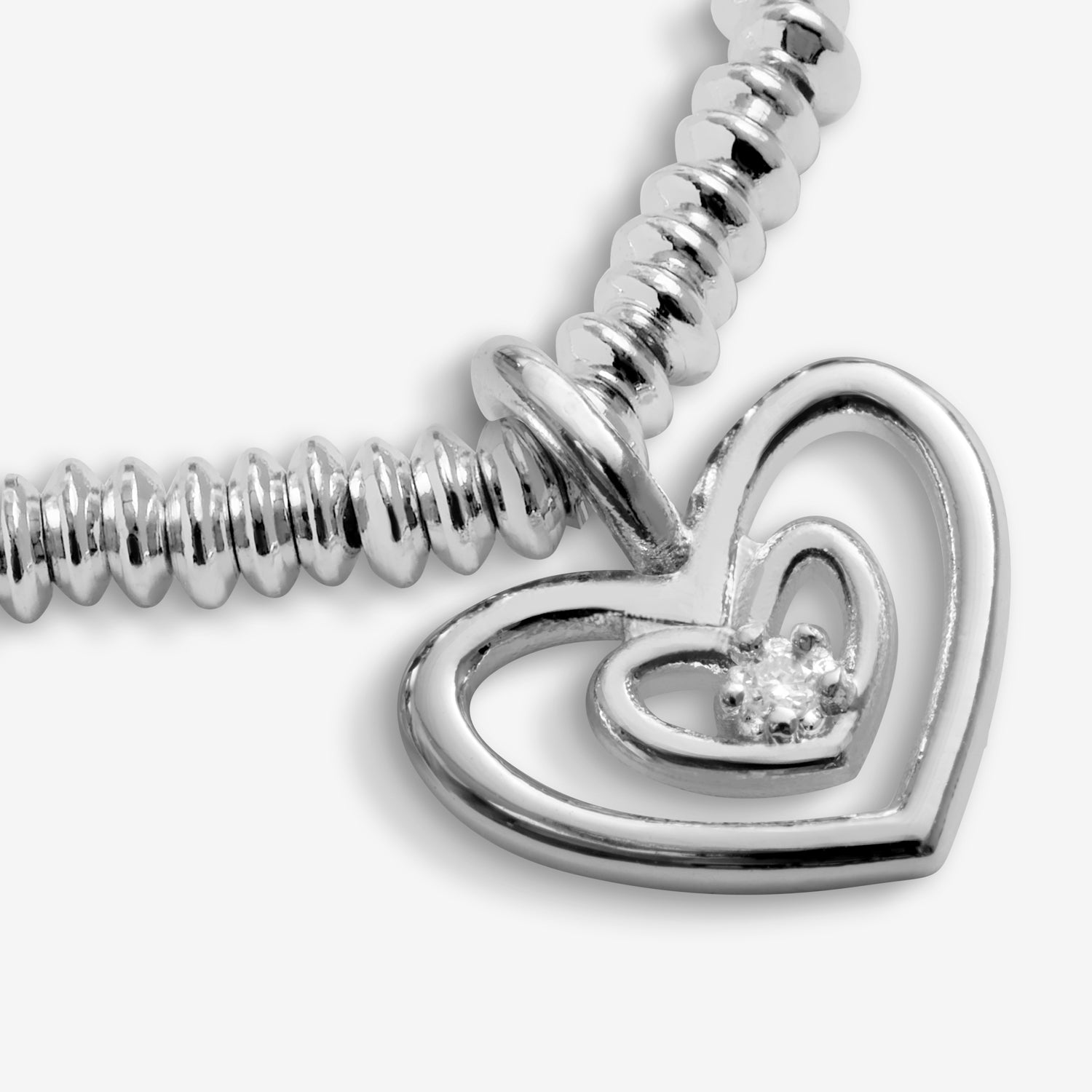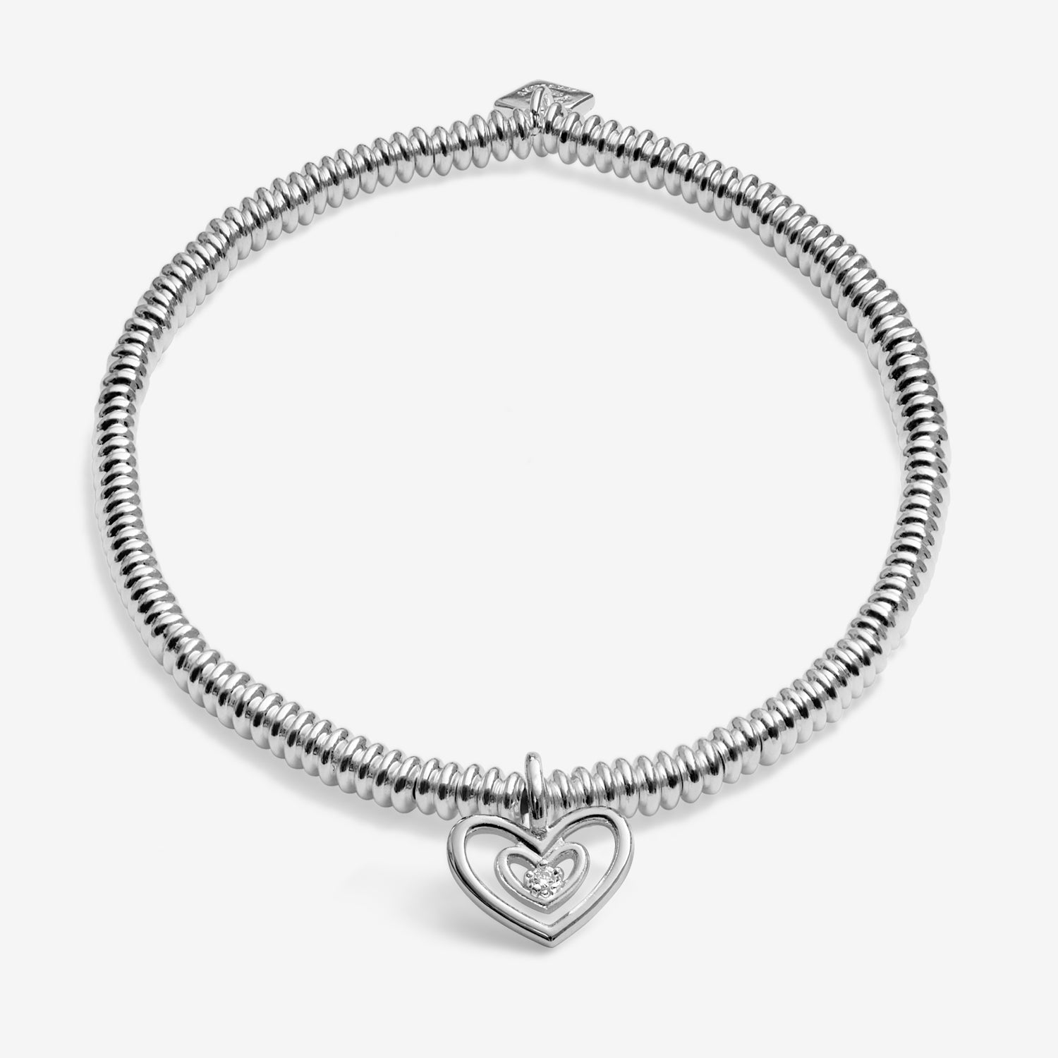 Beautifully crafted in silver-plated brass, this elegant stretch bracelet features a shimmering laboratory grown diamond charm, symbolising love, appreciation, and everlasting family bonds.