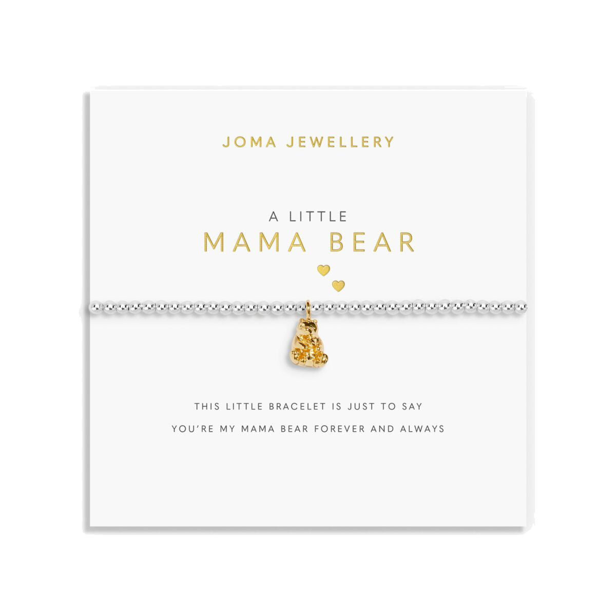 The Mama Bear silver-plated stretch bracelet is a thoughtful gift for any mother or mother figure. This delicate piece from Joma Jewellery combines both silver and gold plating, offering a charming and versatile accessory that complements any outfit.
