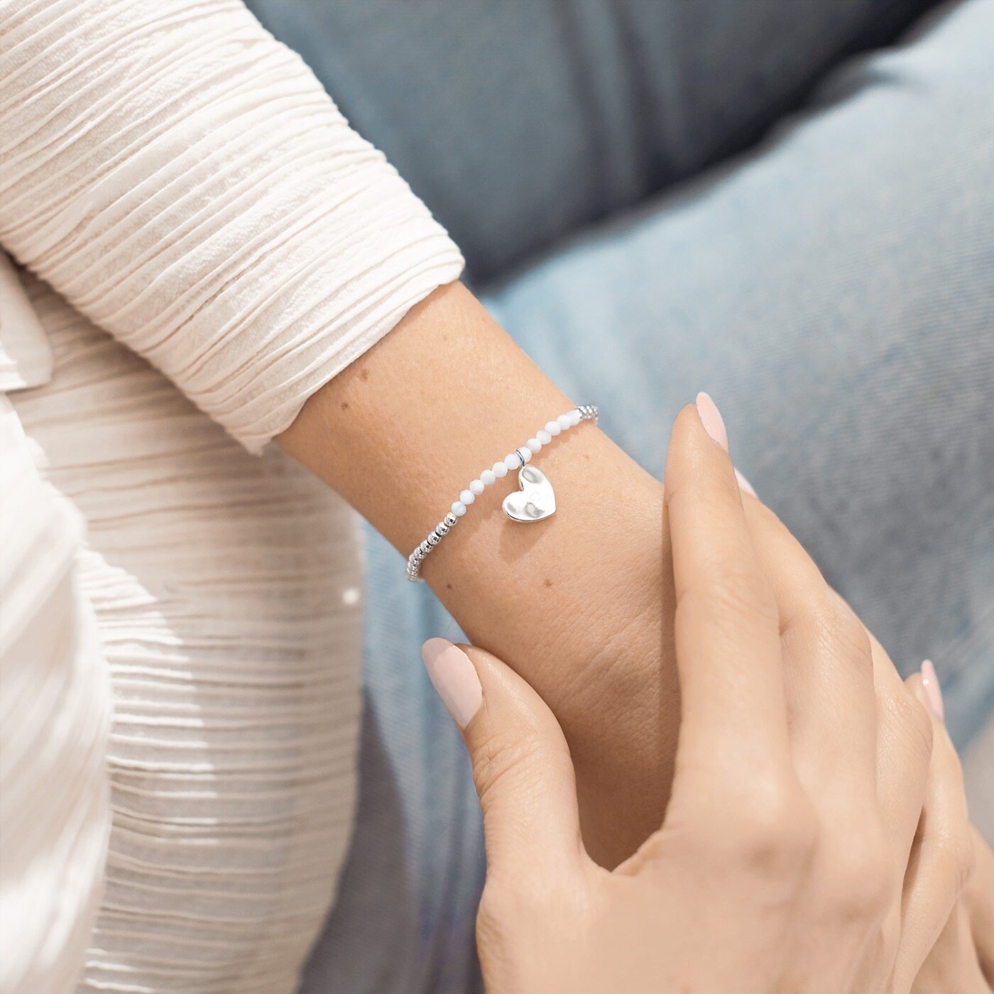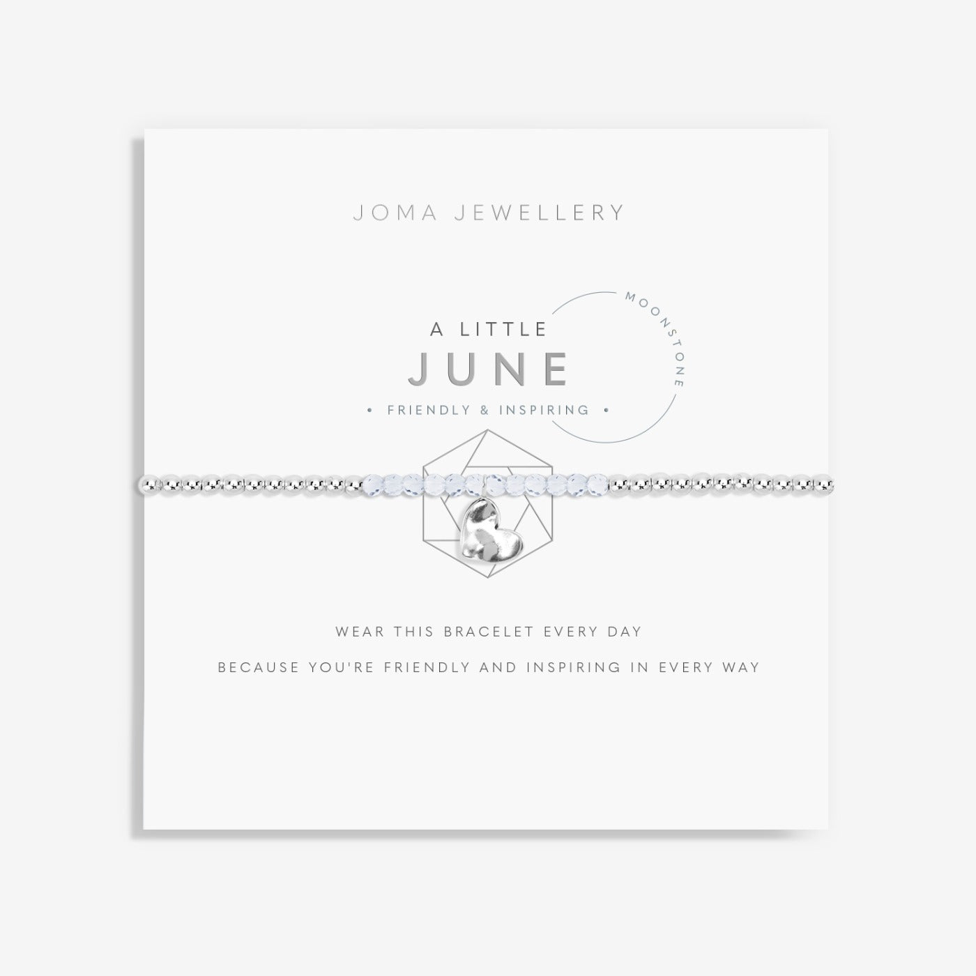 For all June babies, our lovely 'A Little' bracelet radiates birthstone beauty with special moonstones and a gently hammered silver heart charm.