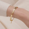 Ideal for gifting or enhancing your own wrist stack, these gold or silver-plated cubic zirconia bangles feature a sleek curved bar and cubic zirconia accents. Finished with a clasp chain and open cuff design, this bangle will arrive in a reusable suedette jewelry pouch – perfect for a polished, gift-ready presentation.