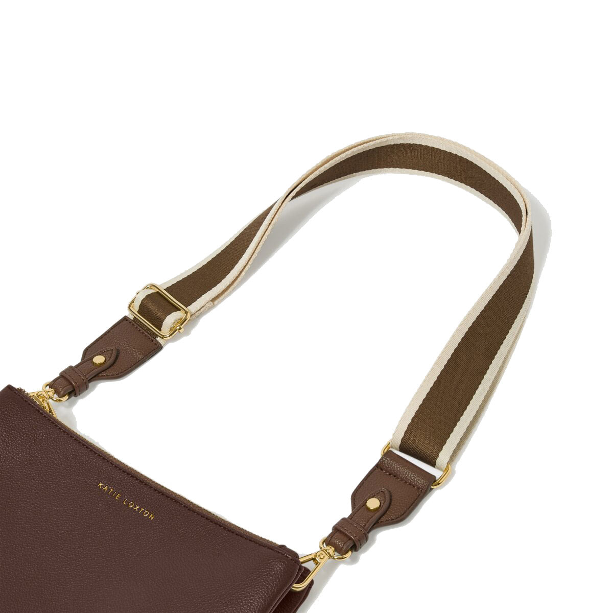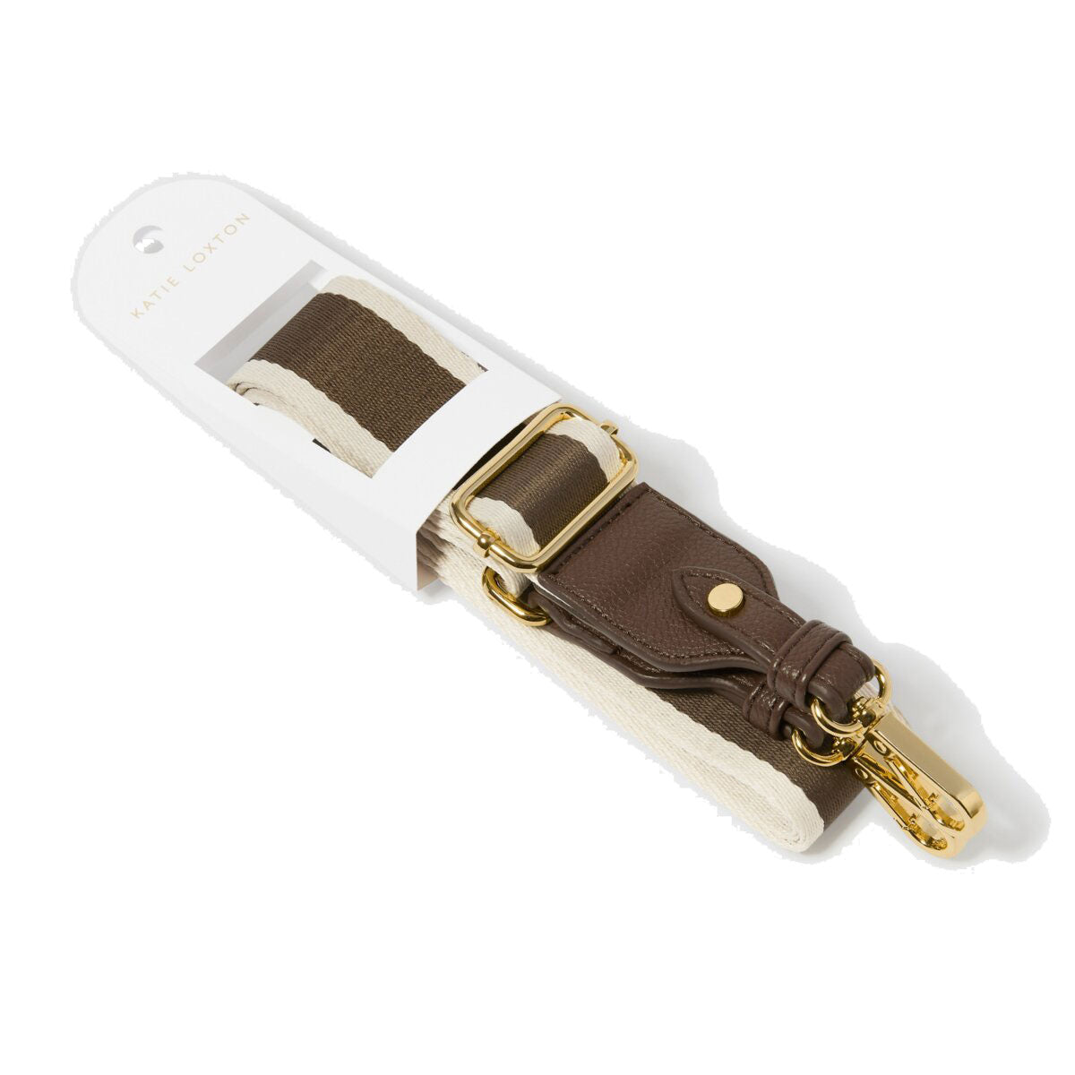 Katie Loxton Stripe Canvas Bag Strap in Chocolate