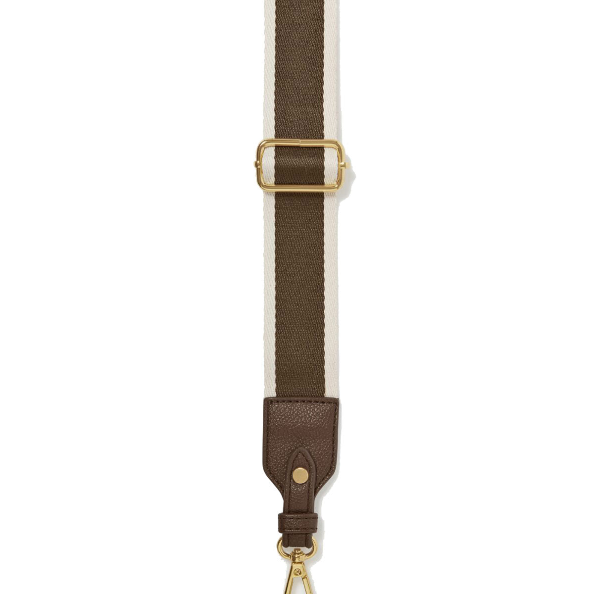Add a touch of classic elegance to your accessories with the Katie Loxton Stripe Canvas Bag Strap in Chocolate.