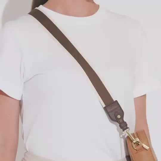 Featuring a rich chocolate-toned striped design, this versatile strap effortlessly enhances any Katie Loxton bag. Crafted from durable canvas with vegan leather trim and finished with luxe gold-tone hardware, it perfectly balances style with functionality. Fully adjustable and detachable, it can be worn as a chic shoulder strap or a hands-free crossbody, giving you the freedom to style your bag your way.