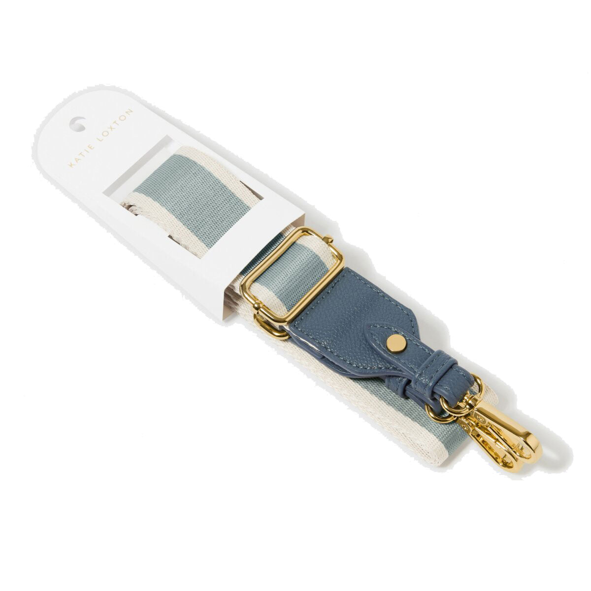 Katie Loxton Stripe Canvas Bag Strap in Dusty Blue