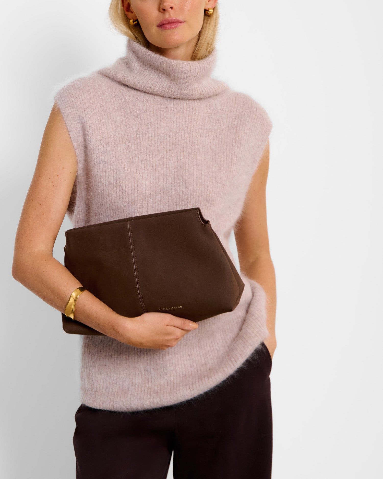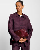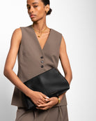 With its soft, slouchy silhouette and sleek central seam detail, it sits comfortably under the arm while exuding understated elegance. Crafted from vegan leather with a suedette lining, this multifunctional bag features a hidden magnetic closure and an internal slip pocket to keep your essentials neatly organised. Whether styled as a chic evening clutch or used as an organiser within a larger tote, Laila is designed to suit every occasion.
