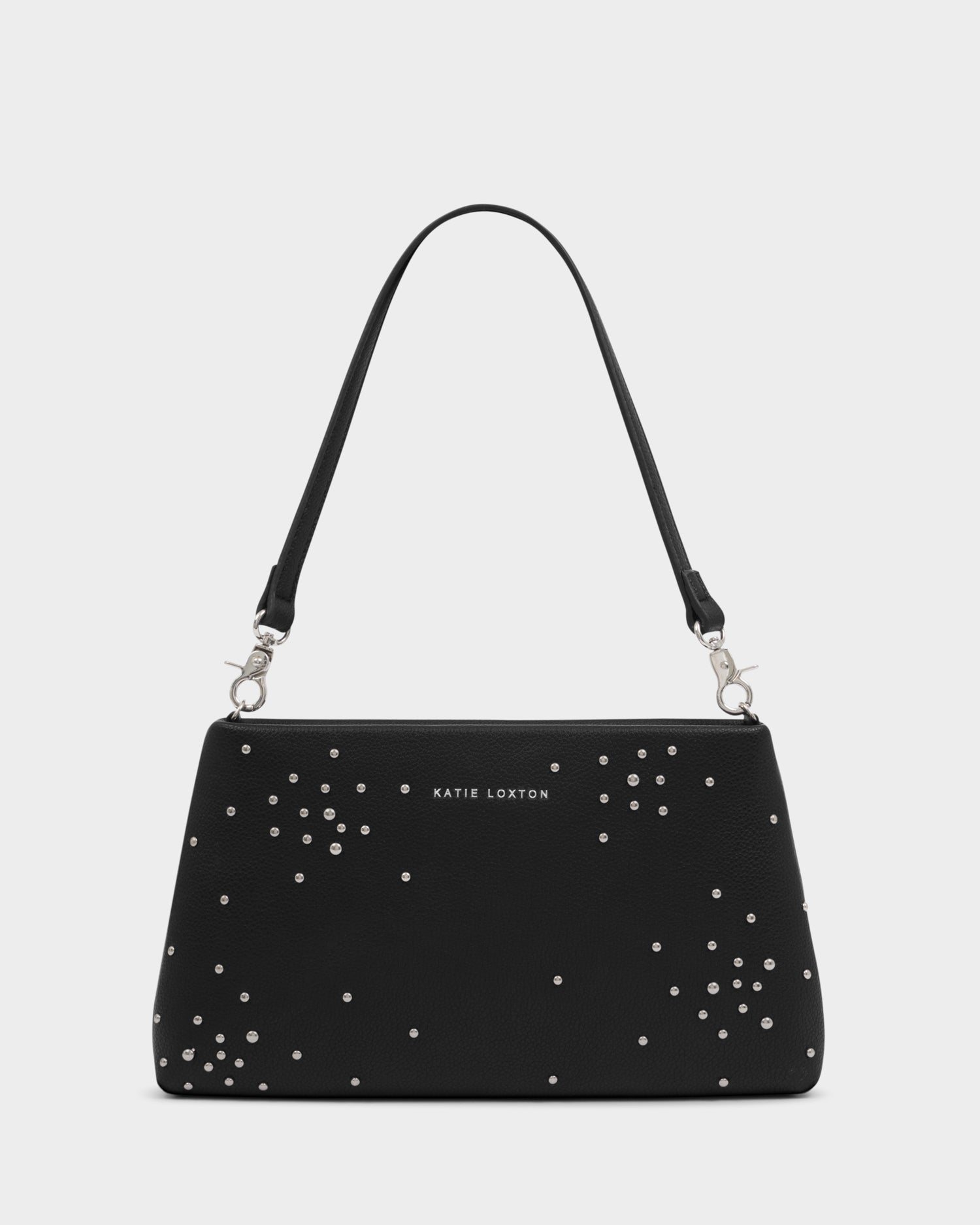 Featuring domed silver studs in a striking starburst design, it adds instant glamour to any outfit. Crafted from smooth vegan leather, this sleek clutch is perfect for evenings out and special occasions. Its clever multi-way strap allows you to style it as a classic clutch, a chic wristlet, or even a compact shoulder bag, making it as versatile as it is stylish. Finished with silver hardware, Nova is the ultimate party-season essential.