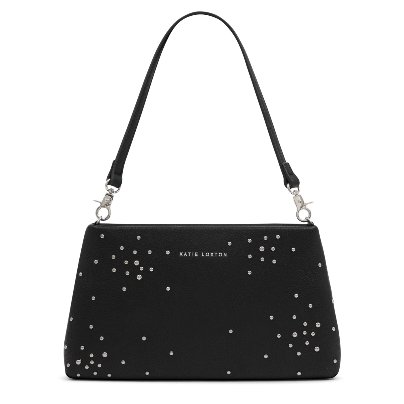 The Katie Loxton Nova Wristlet Clutch in Black is a statement accessory designed to shine.