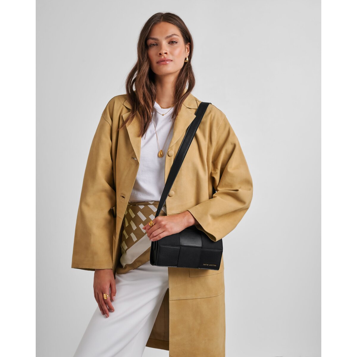 Infuse your wardrobe with textural intrigue with the Katie Loxton Taya Suedette Crossbody Bag, a sophisticated fusion of contemporary flair and timeless design.