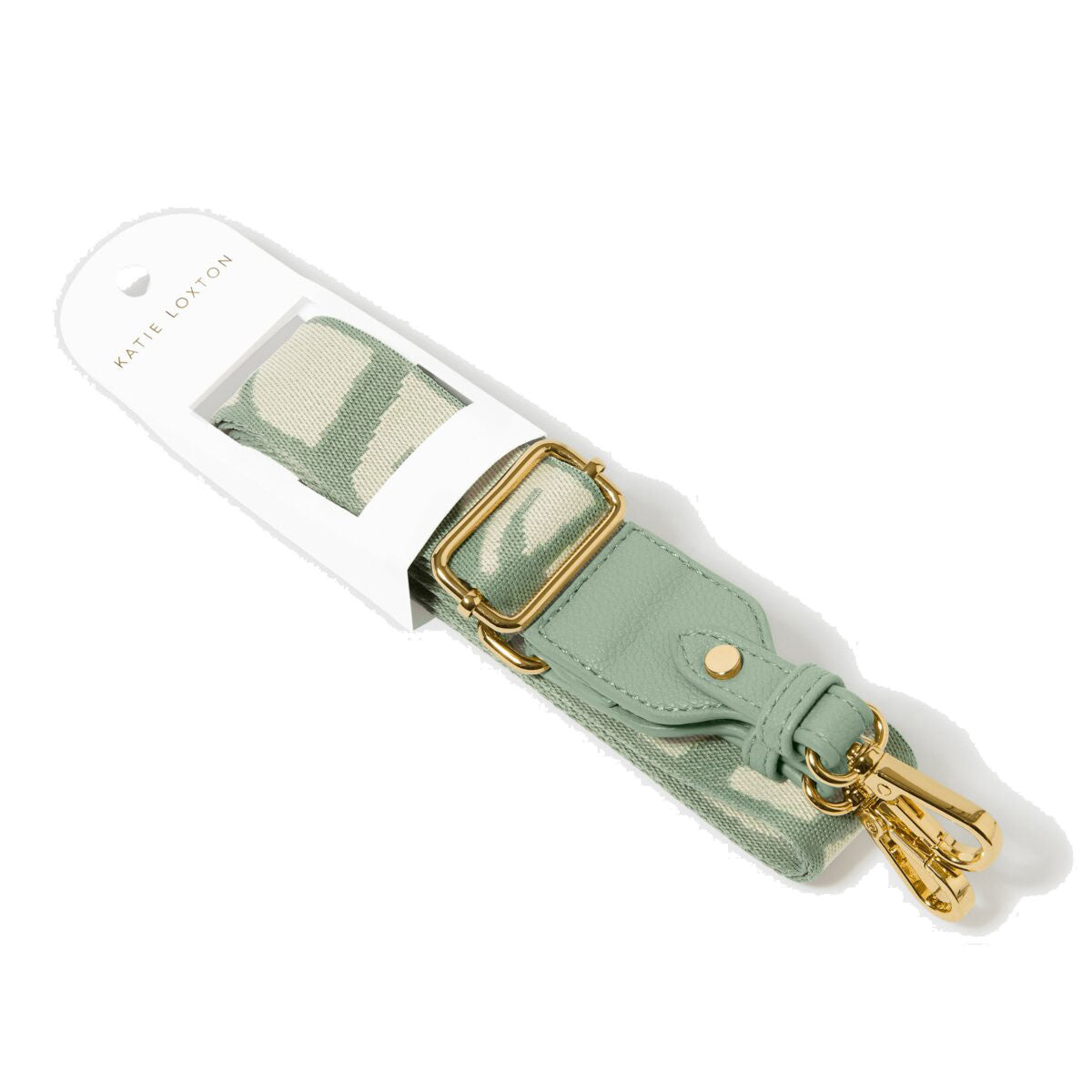 Refresh your accessory collection with the Katie Loxton Abstract Canvas Bag Strap in Seafoam Green and Ivory.